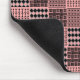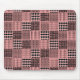 Este mouse pad tem um design Boho de quadrados com padrões em preto e rosa.