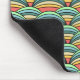 Este mouse pad tem um design boho de arco-íris sobrepostos em cores boho de azul, verde, amarelo e vermelho.