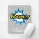 Coloque um grande sorriso no rosto de alguém usando este mouse pad retro da cinza de quadrinhos. Com uma cinza de fundo, "Boom" é escrito em texto amarelo e preto com uma faísca branca e azul atrás dela. Você pode personalizar seu nome no fundo em branco. Personalize o seu hoje! Clipart: AnneIllustration https://www.etsy.com/shop/AnneIllustration