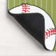 Pão de mouse simples e na moda. Pão de baseball com bola de beisebol em listras - grama verde. Personalize o bloco com seu nome. O fundo é verde e azul com faixas azuis. É uma ideia de presente de excelente para uma criança que ama beisebol e esporte.