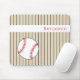 Pasta simples e na moda do mouse. Pão de baseball com bola de beisebol em listras. Personalize o bloco com seu nome. O fundo é bege com listras pretas. É uma ideia de presente de excelente para uma pessoa que ama beisebol e esporte.