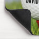 Bola de golfe branca numa vara vermelha na grama com um nome pessoal. O nome pode ser editado ou excluído.