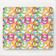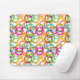 Este mouse pad tem um design geométrico de três círculos aninhados e espalhados pelo design em várias cores.