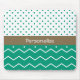 Um mousepad na moda com as vigas e as bolinhas do verde esmeralda contra um fundo branco. Personalize adicionando seu nome a esta tendência quente da forma de 2013.