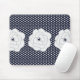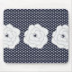 Mousepad Bolinhas azul marinho e grandes flores brancas