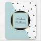 Personalize este mouse na moda com seu nome, monograma ou outro texto desejado. Esta adorável design apresenta um bloco colorido azul pastel com bolinhas pretas e brancas. Um quadro decorativo no centro do design rodeia seu texto com estilo distinto.