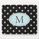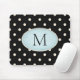 Mousepad Bolinhas de marfim, preto e azul pálido, monograma