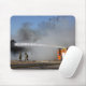Um mouse pad com uma foto de bombeiros batendo uma mancha.