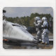 Os bombeiros respondem à cena de um acidente simulado em avião em que apareciam aviões.