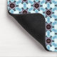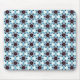 Repetir padrões geométricos numa formação simétrica usando tons azuis, pretos e brancos. A design centra-se em motivos circulares organizados para criar um efeito visualmente envolvente e equilibrado.