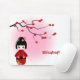 Mousepad Boneca kokeshi japonesa em sakura floresce