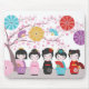 Explore o mundo das bonecas Kokeshi japonesas e flores de cereja com este lindo mouse pad.