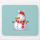Um bonitinho bonitinho bonitinho de Natal que é meio gordinho e alegre vestindo um cachecol listrado e um chapéu de natal vermelho. Festivo e divertido.