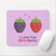 Um belo desenho de comida de amora e framboesa apaixonado pelo trocadilho divertido que diz "Eu te amo muito!" que é uma peça de palavras na comida muito. Doce doce para Namorados ou ocasiões especiais de amor.