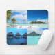 Mousepad com uma colagem da foto do viagem de várias paisagens com as praias no tropical, ilha do Pacífico Bora Bora perto de Tahiti em Polinésia francesa com o texto "Bora Bora".
