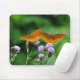 Resto alaranjado brilhante de dois butterflys em wildflowers roxos.