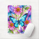 Borboleta Azul Num Campo de Flores, esta design apresenta uma bela Borboleta Azul num Campo de Flores.