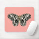 Mousepad Borboleta branca e preta,fundo rosa-coral