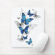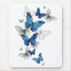 Borboletas azuis voadoras morfo e borboletas brancas em um fundo de abstrato leve. Morpho. Design com borboletas azuis morfo.