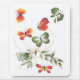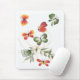 Tapete do rato com as borboletas coloridas na laranja e vibração verde sobre a parte superior do tapete do rato e em torno da videira frondosa. Original no acrílico no papel por Deborah Miller, caras.