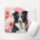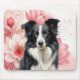 Mousepad Border Collie Dog and Bold Pink Lilies