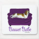Basset Hound bonito que lounging no sofá roxo!