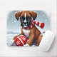 Mousepad Boxer Puppy em Snowy Scenery Segurando uma Bola