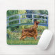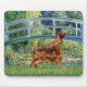 Lily Pond Bridge, de Claude Monet, adaptada para incluir um Irish Setter. Com tons variados de verde e azul, esta cena serena é uma das pinturas mais populares de Monet.