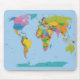 Mapa do mundo com nomes de países, nomes de cidades, grandes cidades, nomes de ilhas, nomes de mar e gratificações. Os países são representados em cores brilhantes.