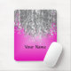 Personalize facilmente este fundo do olhar do cetim bling metálico da faísca do brilho da prata feminino elegante chique do falso e de rosa quente com suas iniciais feitas sob encomenda do texto, do nome ou do monograma para fazer um presente personalizado sofisticado original. O clique personaliza para ajustar o texto/o tamanho ou estilo de pia batismal. NOTE POR FAVOR a prata não é metálico, sparkly, brilhante ou glittery. Visite a LOJA de CUSTOMPATTERNZ para produtos de harmonização e uns presentes modelados mais customizáveis.
