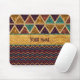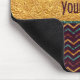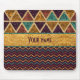Mousepad feito sob encomenda personalizado com um chique, teste padrão bonito, colorido dos triângulos na parte superior - com o falso brilham e o efeito da folha de ouro, e um teste padrão glittery na moda das vigas em um fundo roxo na parte inferior - com uma bandeira falsificada glamoroso da folha de ouro no meio com texto para que você personalize com seu nome ou algum texto. NOTE POR FAVOR: Estes são gráficos impressos plano - folha nao real do brilho ou de ouro.