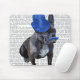 Mousepad Buldogue francês com chapéu azul e bigode