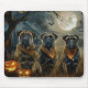 Libere o espírito assustador com esta design sombria do Dia das Bruxas apresentando um bando de cachorros sob um céu escuro e iluminado, cercado por morcegos voadores e abóboras brilhantes. Perfeito para aqueles que amam um toque de diversão terrível com seus amigos peludos!