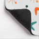 Este mouse pad tem um médio atômico moderno do século design de formas de bumerangue, antenas e estereótipos em cor de laranja.