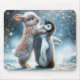 Mousepad Bunny Rabbit Hugging a Penguin