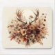 Um buquê de flores do outono está entrelaçado com chifres criando uma mistura encantadora de natureza e vida selvagem