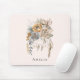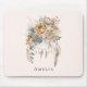 Mouse pad com um bonito buquê de flores em cores neutras de marrom, pêssego e laranja. Um apanhador de sonhos com penas adiciona um elegante talento místico.