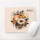 Mousepad com um buquê de flores elegante, mas gótico. Compostos por tulipas de laranja, margaridas amarelas, folhas de cinza e alvéolos e alguns acentos de orango.