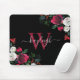 Mousepad Burgundy Black Watercolor Nome Floral Monograma