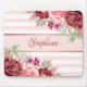 Mousepad Burgundy Blush Floral Stripes Monogram Name