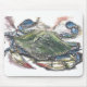 A imagem do caranguejo azul foi criada com caneta, tinta e tinta acrílica em papel aquoso.