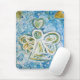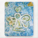 A pintura é de um anjo branco e dourado com sotaques verdes cercados por céu azul girando e corações ouros. Os anjos têm um coração branco em vez de um halo acima da cabeça do anjo.