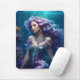Uma bela sereia com cabelo roxo cascata no oceano. Personalize com um nome.