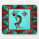 Este é um único "Um dos tipos" do mouse sudoeste de Kokopelli, que apresenta um Kokopelli sudoeste tocando flauta e dançando sob o sol em um fundo turquesa... cercado por uma turquesa sudoeste, oranjeira e borda negra!