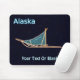 Diga-lhes o que você faz por diversão durante o inverno. Um cachorro trenou com um saco de trenó super-imposto sobre um fundo estrelado. Leitura de texto, "Alaska" aparece em azul e branco brilhantes. Você pode adicionar seu próprio texto, tanto no saco de trenó como na parte inferior.