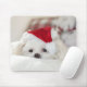 Mousepad Cachorro Branco giro em chapéu vermelho de Natal