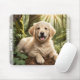 Mouse bonito com um filhote de aquarela de recuperador de ouros na floresta. Faz um gafanhoto de estoque fofo ou presente de aniversário. Personalize facilmente o texto ou deixe-o vazio. - Kate Eden Art