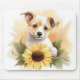 Trabalho de arte de aquarela de um filhote fofo com um girassol amarelo.