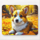 Mousepad Cachorro Corgi Brincando em Folhas de Queda