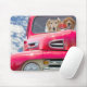 Par de recuperadores de ouros em um caminhão vermelho velho com dados de felpudo.